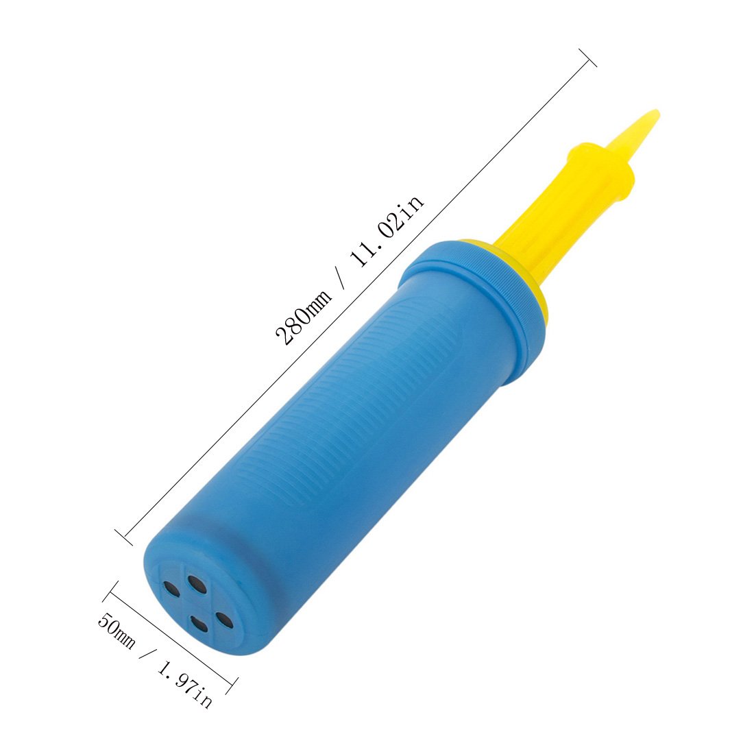 Multi-Use:Fit for most of balls,ideal for pool floats, exercise balls, jumping balls,rody or hippity hop bouncer, hopper balls,etc. Portability:28x5CM/11x2IN, it's small, economical pump for occassional use Labor-Saving:using a manual pump not only saves the energy you’d expend blowing up balloon after balloon by mouth, but also saves you time, as they inflate much faster with this handy dandy tool. Easy Usage:Pumps on the up and down strokes,blowing up balloons has never been easier. No batteries, plugs or cords! 100% Money Back Guarantee:We will send your money back if you don't like it or any problem with it.